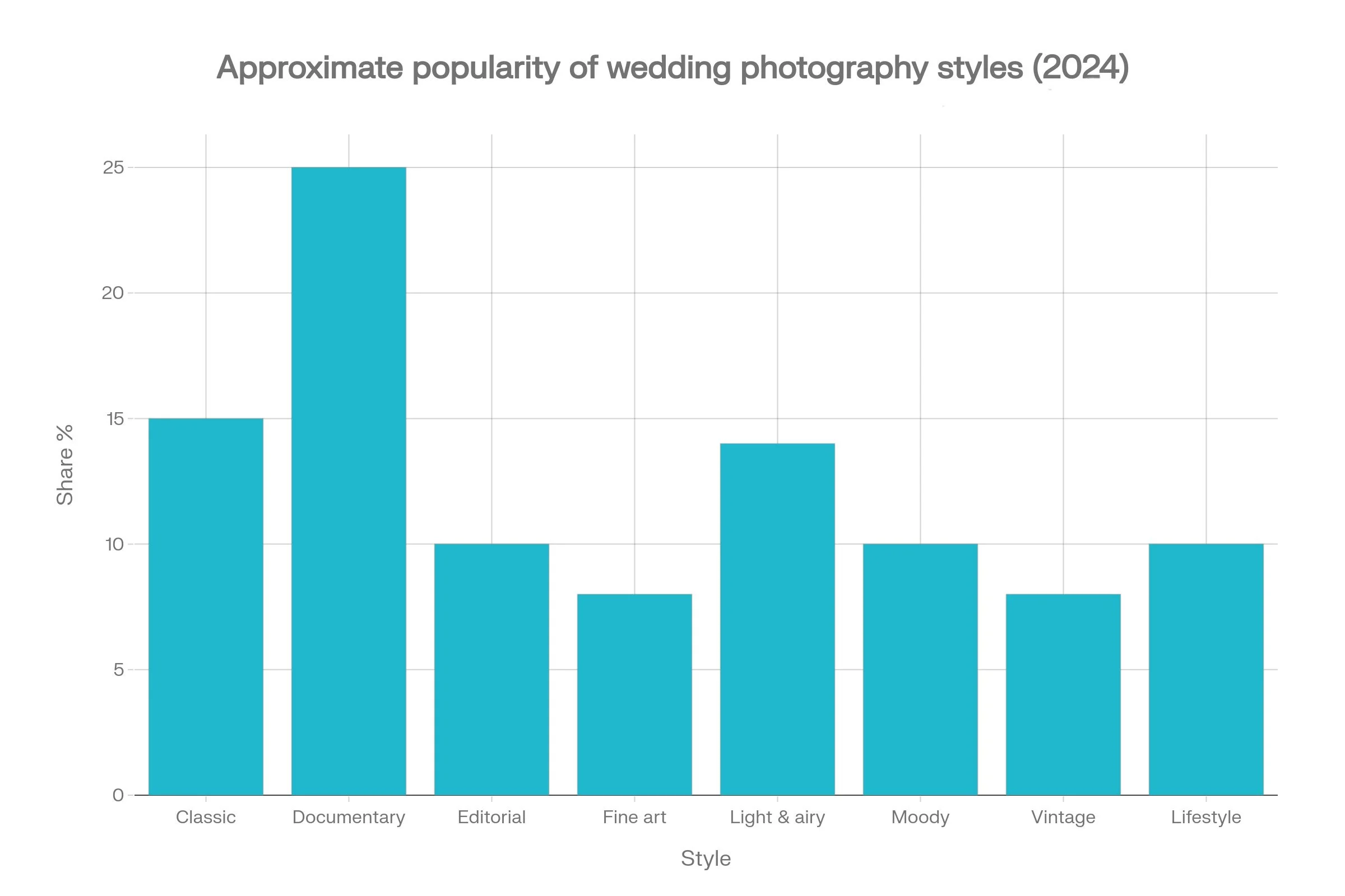 Decide how you want your wedding to feel when you look back: cinematic, soft and romantic, classic, or unscripted and real.